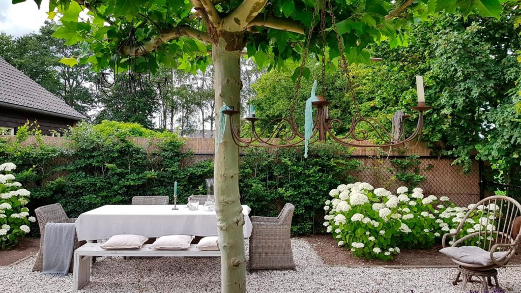 Dat mensen heel graag terugkomen â sommigen al twaalf keer (in vijf jaar!) â is niet verwonderlijk. Als je je auto eenmaal hebt geparkeerd, heb je die niet meer nodig. De royale tuin nodigt uit om neer te strijken op een plekje naar keuze. De bank op het overdekte terras is heerlijk om âs morgens in het zonnetje te genieten van de rijkelijk gevulde ontbijtmand. In de loop van de dag is er altijd wel een zonnige of juist schaduwrijke plek. De tuin geeft energie, is een fantastische plek om je op te laden. De vuurschaal en barbecue staan klaar.