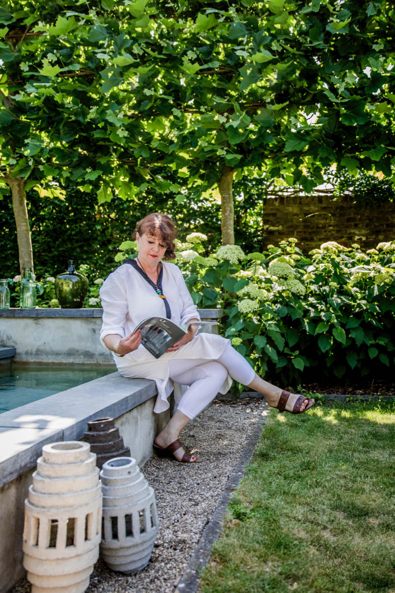 Ooit hadden kippen er een riant verblijf onder de eiken balken en ijzeren kozijnen. Marilola en Jan van Megen maakten van de oude schuur op hun Limburgse erf een warm nest voor logees: B&B Onder de Noot. Wie wil, kan hier via de ladder āop stokā in de bedstee. Onder de Noot is het gedroomde buitenhuisje-voor-een-nacht. Het zwarte, gepotdekselde verblijf ligt romantisch verstopt tussen verhoogde moesbedden vol rabarber, rozemarijn en basilicum. Vaasjes met vers geplukte Annabellen, rozen en goudsbloemen bungelen aan een gewei aan de gevel. Ook binnen staan overal zomerbloemen op de vaas. Het bed is al opgemaakt tussen de verweerde gebinten anno 1830. Het ruikt hier zoet naar snijgroen en grenenhout. Het frisse groen op de muur is afgeleid van het blad van de walnotenboom op de binnenplaats. Buiten lonkt het terras onder de druif. MĆ©t zwembadzicht. Al spreken eigenaren Marilola en Jan van Megen liever van een āplonsbadā vanwege het bescheiden formaat. Plonzen, pootjebaden of zwemmen; het koele water lonkt op zwoele zomeravonden als deze.