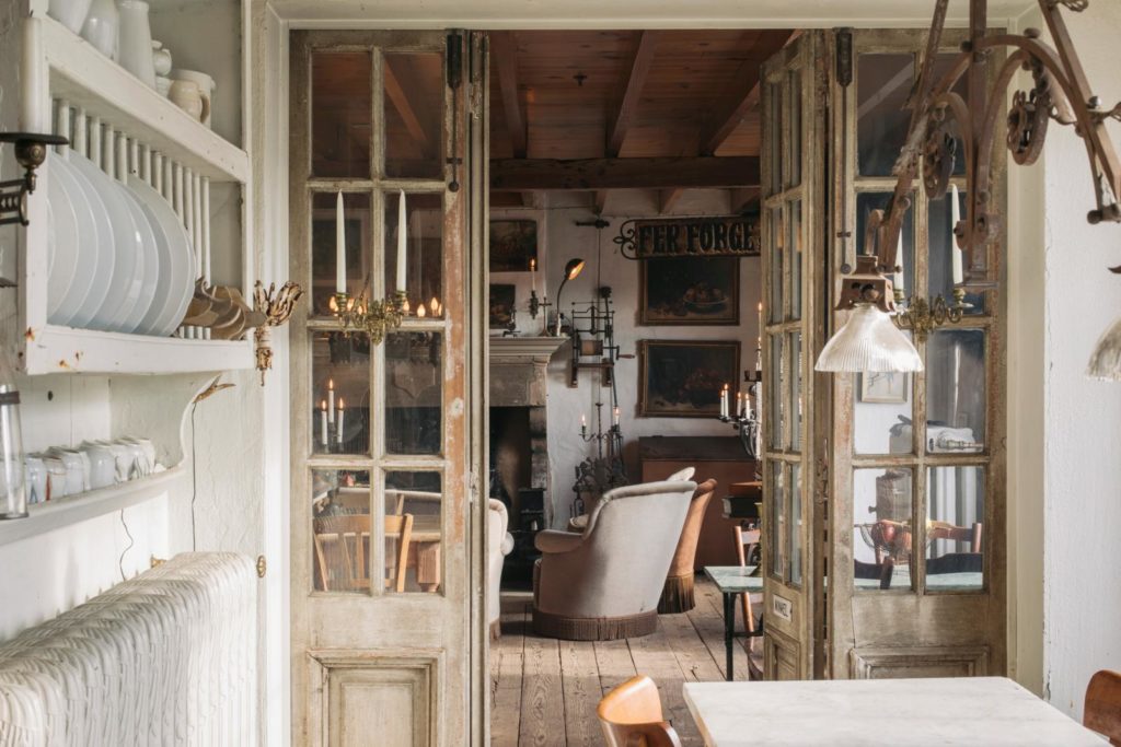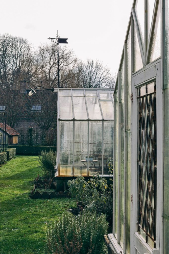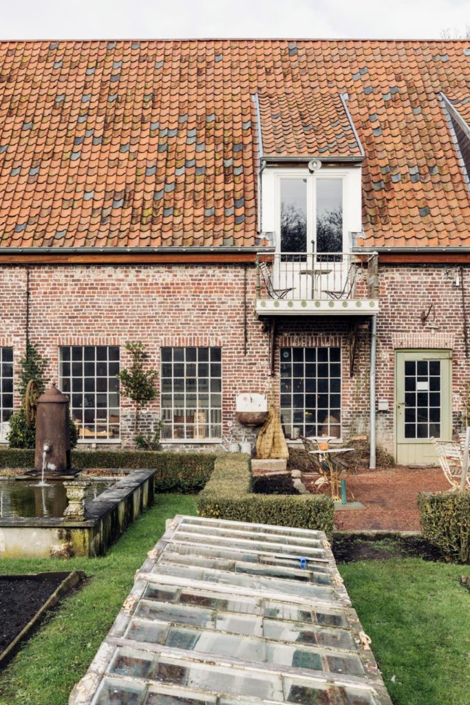 In het Oost-Vlaamse Merendree rijden we de Veldestraat binnen, een naam die goed beschrijft waar we terechtgekomen zijn. Vanaf de lange oprit van logies De dag des Heeren kijk je namelijk uit op uitgestrekte landerijen, maar ook het perceel zelf is een prachtig stukje groen. Hoogtepunt is de moestuin met netjes afgelijnde groentevakken. Ze zijn begrensd met graspaden en leifruit en hebben doorgangen met bogen waar ’s zomers rozen omheen klimmen. Ook in de winter proef je de charme, maar zodra je de herenboerderij binnenkomt, stap je pas echt de bijzondere wereld van weleer in die eigenaren Katleen De Decker en Bart T’Hooft hier hebben gecreëerd.