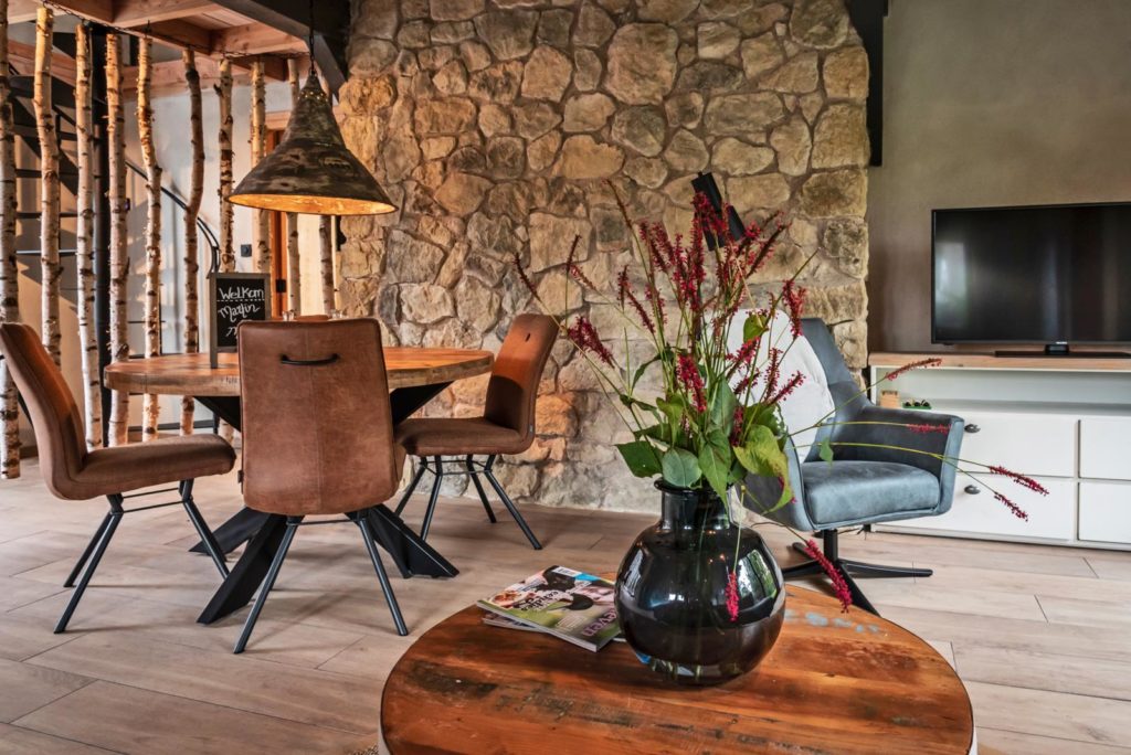 Op het landgoed zijn talloze plekjes om te genieten van de betoverende natuur en de oorverdovende stilte. Waar die zijn, mag je zelf bedenken! Speciaal daarvoor bedachten Inge en Peter het concept ‘leenstoelen’. Kwestie van oppakken, meenemen en neerzetten. Inge: “Ook hebben we verschillende wandelroutes uitgezet om de omgeving te ontdekken. Ommetjes noemen we die. Ommetje ‘bos en weide’ biedt prachtige doorkijkjes en tijdens ‘kleintje bos’ kun je ’s ochtends vroeg of in de avondschemering reeën tegenkomen.” En daarna? De haard aansteken in de Finse kota en urenlang in de vlammen staren.