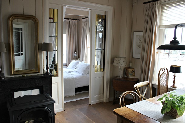 Binnen zijn alle authentieke details bewaard gebleven en in de woonkamer siert een houtkachel de schouw; fijn voor frisse avonden. Er zijn twee slaapkamers, sfeervol en uitnodigend ingericht. De volgende ochtend speelt de zon al verstoppertje met de gordijnen wanneer Tonie aanklopt met haar ontbijttrolley vol warme croissants en ander vers lekkers.