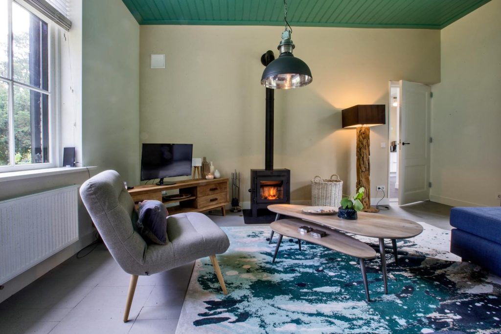 Op de begane grond vind je een comfortabele huiskamer met houtkachel en een aparte, ruime woonkeuken. Grote ramen en openslaande tuindeuren in beide ruimtes zorgen ervoor dat je zelfs binnen de nabijheid van de natuur voelt. Op de benedenverdieping bevindt zich ook de mooiste slaapkamer van het huis, met vrijstaand ligbad ín de kamer. De overige slaapkamers zijn boven.