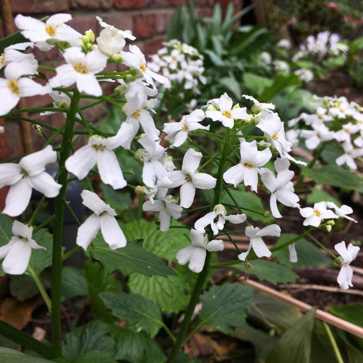 âEen verrassende maar subtiele verschijning vormen de helderwitte clusters bloemen van de Kaukasische look-zonder-look. Als lid van de kruisbloemige familie heeft deze Pachyphragma macrophyllum de kenmerkende vierdelige bloempjes die we ook kennen van pinksterbloem of judaspenning, wat een wat wilde uitstraling geeft. Perfect in de verder nog prille voorjaarstuin en als mengplant voor al die bloeiende bollen.â