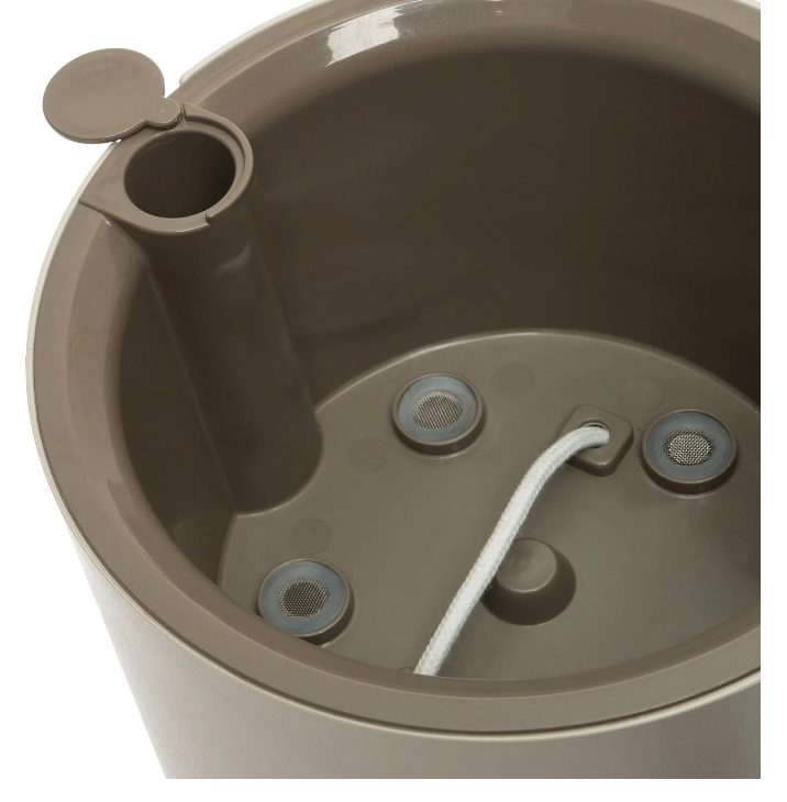 Deze handige insert is een simpel watergeefsysteem waarmee de planten op het juiste moment precies de juiste hoeveelheid water krijgen. De watermeter van het systeem geeft aan wanneer je hem moet vullen, waarna de planten wekenlang voor zichzelf kunnen zorgen. Hij komt in verschillende groottes, en past sowieso in de Elho bloemenpotten. Elho insert | van € 8,99 tot € 20,99 | elho.com