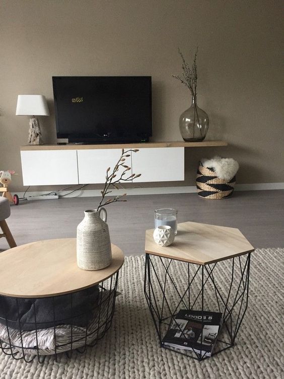 Hoekige tafeltjes combineren is een goede optie en kan voor een strak geheel zorgen. Kies verschillende hoogtes om er wat meer variatie in te brengen. €59.95 (set van 3) IKEA