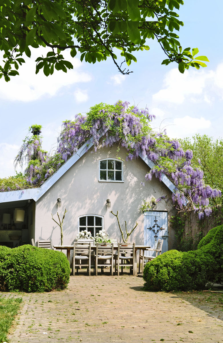 Al slingerend groeit hij langs daken en pergola’s en maakt alles mooi met zijn royale bloemtrossen die op de eerste warme lentedag ineens overweldigend in bloei staan. De blauweregen (wisteria) is de heerlijkst denkbare overdaad in geuren en kleuren.
