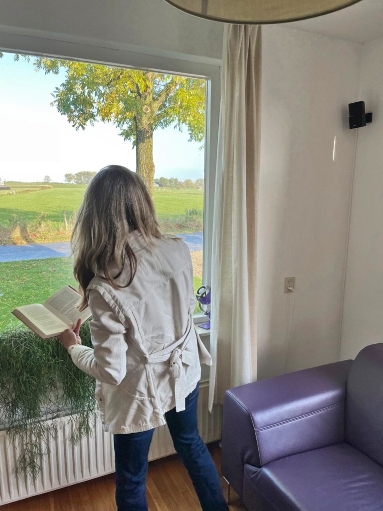 Ik zit op de bank, verdiept in een boek. “HĂš hù”, zucht ik. “Even lekker wegdromen.” Sinds ik op het platteland woon, praat ik hardop tegen mezelf. Ik sla de bladzijde om en zie in mijn ooghoek iets bewegen door het raam. Iets groots. Het is vosbruin. Ik schrik. Er galoppeert een paard voorbij. En nog een. Allebei zonder hoofdstel.