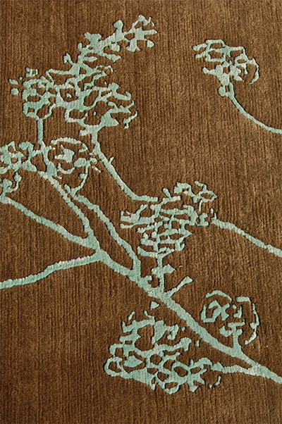 De vloerkleden van Amy Kent Bomen, bloemen en bloesem worden op de tekentafel van ontwerpster Amy Kent krachtige lijnen en sterke silhouetten. Vertaald in wol en viscose ontstaan unieke, handgeknoopte vloerkleden.