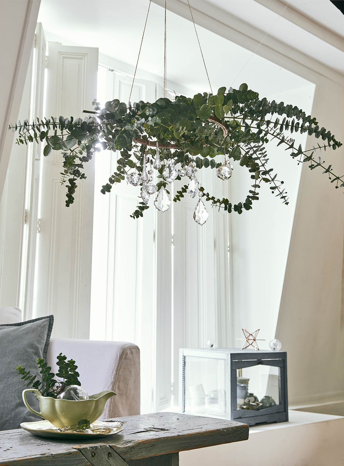 Haal het frisse parfum van dit seizoen naar binnen, met deze winterhangers vol geurende takken, blaadjes en kruiden, die je makkelijk zelf kunt maken. Lichtjes in koper- en goudtinten geven de steeds donkerder avonden een sfeervol accent. Een voorbode van de feestdagen.