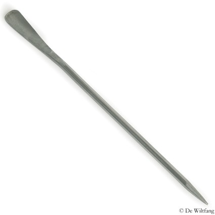Handig hulpje bij het verspenen is dit verspeenlepeltje van roestvrijstaal. Met het puntje wip je het miniplantje uit het zaaipotje zonder de fragiele wortels te beschadigen. Met het lepeltje maak je een plantgaatje in de nieuwe pot. www.dewiltfang.nl