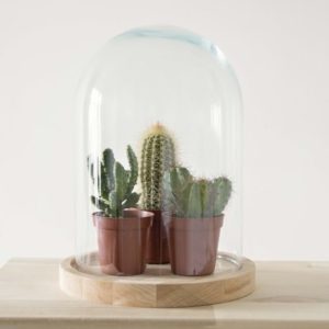 Kleine plantjes zoals cactussen kunnen goed onder een van je stolpen, vergeet ze niet af en toe water te geven!