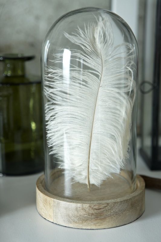 Vind je een mooie veer? Deze geeft een bijzonder effect voor in je stolp. Ook leuk om er meerdere in te doen.