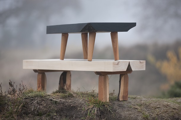 Dat komt ook duidelijk naar voren in de serie bankjes die hij als vrij werk heeft gebouwd. Ze zijn van handzaam formaat, maar herbergen tal van ambachtelijke knipoogjes die voortkomende uit een onderzoekende en geduldige geest. Sommige poten zijn bijvoorbeeld koud in het hout gedraaid. âIk speel met de vochtigheid van het hout. Als een poot eenmaal uitzet in een verbinding, dan zit hij muurvast.â