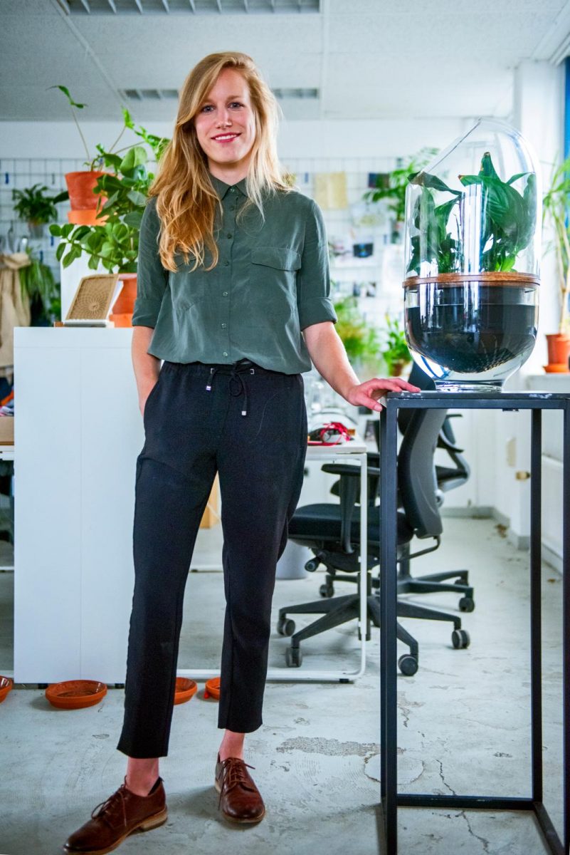 “Ik ben opgegroeid in Lierop, dicht bij Eindhoven. We hadden een grote tuin met geitjes, duiven, een konijn, een schildpad, een hond en een boomhut. Elke zondag struinde ik met mijn vader en broer door de bossen. Mijn ouders leven heel bewust en hebben mij bijgebracht: ‘Als je troep ziet liggen op straat, raap en ruim je het op, ook als het niet van jou is.’ Er werd nooit eten weggegooid. Natuur is kostbaar. Hun meubels van eikenhout zijn nog altijd dezelfde. Niet kapot te krijgen, dus waarom zou je nieuwe kopen? Op de kunstacademie deed ik productdesign en drong het pas echt goed tot me door dat álles ontworpen is, van een bekertje tot een muziekmeubel. Al die producten zorgen ervoor dat wij ons op een bepaalde manier gedragen. Hoe gaan we ermee om? Ik voel dat ik een grote verantwoordelijkheid draag als ik weer iets nieuws ontwerp. Hebbedingetjes zijn er genoeg. Wat wil ik eigenlijk teweegbrengen? In elk geval niet nog meer verlangen naar spullen. Overconsumptie stimuleert slecht gedrag.”
