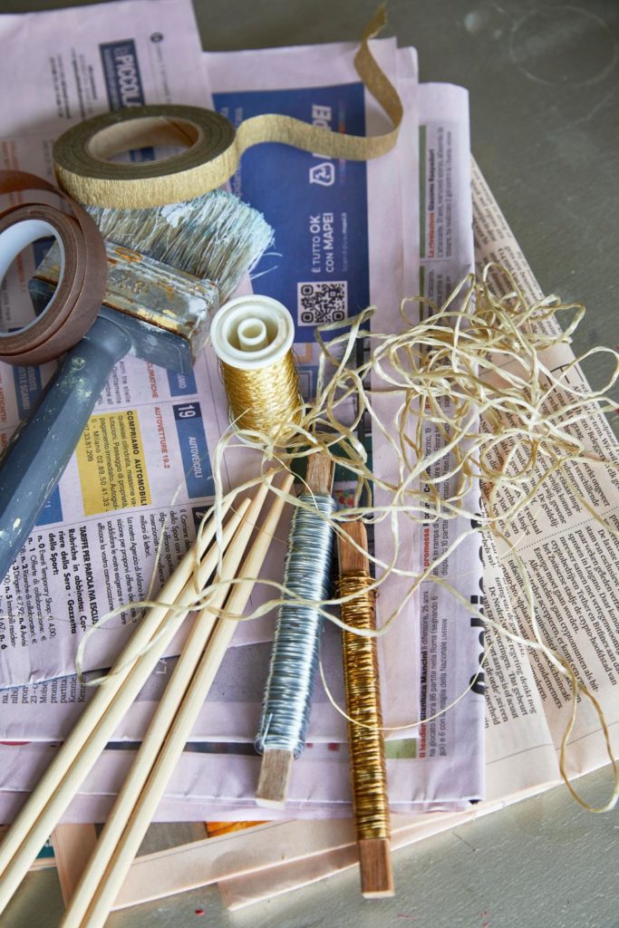 “Mensen denken meteen aan ballonnen en gaas. Dat doe ik niet, vind ik akelig, te voorgevormd of zo. Nee, ik bouw een dier helemaal op uit krantenpapier en behangerslijm. Voor lange nekken gebruik ik ijzerdraad van oude kleerhangers en voor snavels bijvoorbeeld eetstokjes. Ik gebruik ook stukjes pvc-buis, satéprikkers, ijzerdraad, karton, afgebroken kwasten, eierdozen en nog veel meer. Je kunt het zo gek niet bedenken of ik kan er wel wat mee. Al die verschillende materialen moeten ook weer met lijm of naaigaren verbonden worden.”