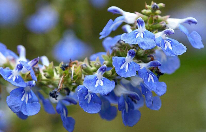 Als de geel en rood verkleurde bladeren van de bomen vallen, lijkt het tuinseizoen te zijn afgelopen. De meeste vaste planten zijn dan uitgebloeid. Gelukkig bestaan er laatbloeiende vaste planten die in de herfst prachtig gekleurde bloemen hebben. Met tinten als die van edelstenen, zoals saffierblauw, amethystpaars en diep robijnrood, schitteren ze tussen het smaragdgroene blad. Saffierblauw zijn de bloemen van de salie (Salvia uliginosa). De lipbloemen zitten bovenaan lange stelen en zijn tot in november te bewonderen. Intens rozerood bloeit de bijzondere salie (Salvia involucrata ‘Bethelii’) en herfstaster Aster Jenny. De monnikskap (Aconitum carmichaelii ‘Barker’s Variety’) bloeit opvallend blauw. Net als de mooie gentiaan (Gentiana makinoi). Al deze edelsteenkleuren komen mooi uit tussen herfstbladeren en siergrassen.