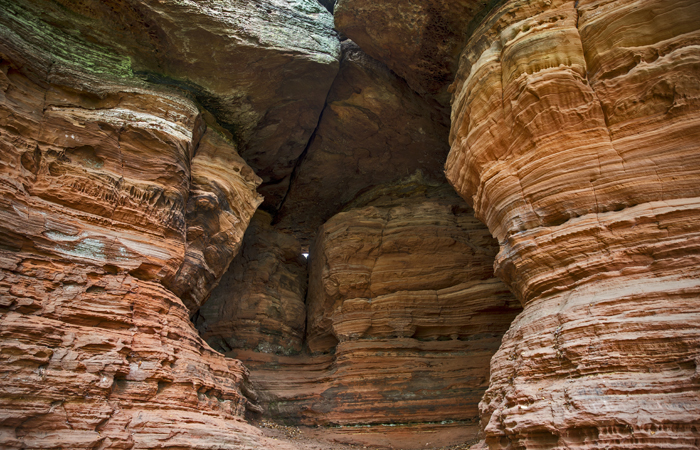 Margriet: “Het valt me op dat uit de weinig voedselrijke, kale rots toch nog bomen en struiken weten te ontspruiten. Op de noordelijke flank van de Altschlossfelsen zie ik dat het zandsteen op verschillende plekken bedekt is met een fluweelzachte waas groen mos. Er zijn richels gevormd als banken, zelfs precies op de goede zithoogte voor wandelaars. Ik blijf me tijdens mijn wandeling verbazen. Ik zie vogels, zoals valken en uilen, die zich nestelen in spleten en holen. En ook andere dieren kunnen bij de Altschlossfelsen een veilige schuilplaats vinden. Wilde katten en zelfs lynxen kennen in dit bijzondere gebied de weg. Ongelooflijk, op nog geen halve dag reizen van Nederland ligt een majestueus meesterwerk van de natuur, klaar om ontdekt te worden.”