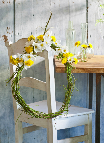 - Buig de twijgen voorzichtig tot een krans en bind ze vast.