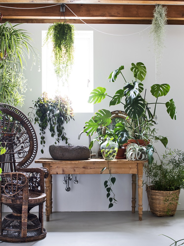 Volgens Pauline zijn groene vingers zijn niet per se noodzakelijk om planten goed te kunnen houden. De vraag is vooral: heb je tijd om er iedere week naar te kijken? “Zo niet, kies dan planten die minder vaak water nodig hebben, zoals Rhipsales- en Lepismium-soorten of andere cactusachtigen en vetplanten. Olifantsoor (Alocasia calidora) en bananenplant (Musa) zijn trendy, maar geen gemakkelijke planten. Ze zijn heel gevoelig voor licht: te weinig is funest, direct zonlicht is niet goed en tocht veroorzaakt snel spint.