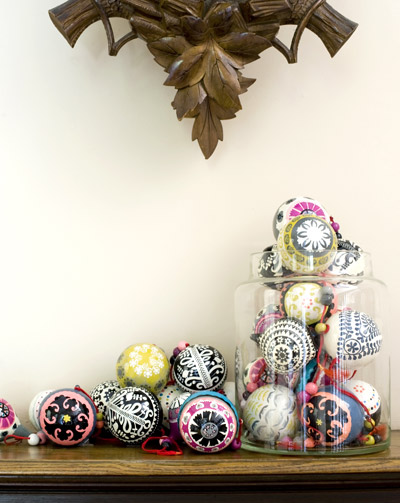 Zo komt de papierkunst Wycinanki terug in haar collectie kerstballen ‘Bombki’. In de webshop van My Poland van Irena Bieguńska vindt u Bombki van een duurzame kwaliteit kunststof met daarop mooie, authentieke patronen. De Bombki op de foto zijn geïnspireerd op de Poolse knipkunst en werden in India handbeschilderd op papier-maché. Ze zijn verkrijgbaar via de webshop www.niki-jones.co.uk.