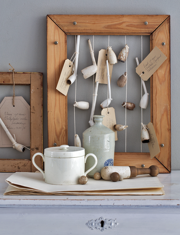 Een scherf van een bordje of oude fles, een verroeste sleutel, een gebroken pijpenkop en bijvoorbeeld een verlaten slakkenhuisje lijken van weinig waarde. Op de juiste manier tentoongesteld blijken ze echter verrassend mooie blikvangers in het interieur.