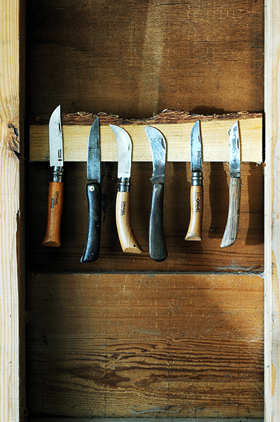 Een mes is een manusje-van-alles in de tuin. Goed voor touw, bloemstelen en mos tussen de tegels. En wat voor snoeischaren geldt, gaat ook op voor de tuinmessen. Houd ze schoon en scherp. Onderhoud Een scherp mes is heel belangrijk bij het werken in de tuin. Met botte gereedschappen gebeuren in de tuin dikwijls meer ongelukken dan met scherpe gereedschappen. Een botte schaar vraagt nu eenmaal om meer kracht en dat verhoogt de kans op lelijke uitschieters. Een scherp mes snijdt daarentegen gemakkelijk, werkt efficiënter en is dus veiliger in gebruik. Het onderhoud van de messen is hetzelfde als dat van snoeischaren. Zit er veel roest op het lemmet, dan is het verstandig om dit eerst met een schuurpapiertje te verwijderen. Opbergen Magneetjes zijn ideaal voor het opbergen van messen. Gebruik een oud plankje. Boor gaatjes in de plank op de maat van de magneetjes en lijm die met montagekit in het plankje vast. Gebruik Kleine ronde sterke magneetjes die te koop zijn bij kantoorboekhandel of ijzerwarenwinkel.