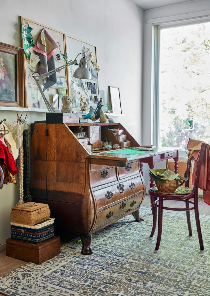 “Mijn werkplek – het oude bureau is nog van mijn opa geweest – is bezaaid met vogelknipsels uit tijdschriften en boeken waar ik regelmatig een blik op werp. Laatst maakte ik een kaketoe, met zo’n kromsnavel. Dan speur ik eindeloos op internet naar informatie, hoe groot zo’n snavel is bijvoorbeeld.