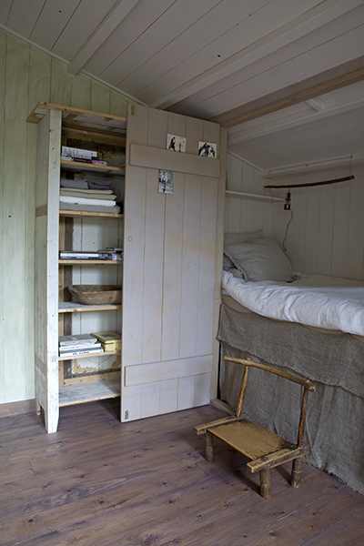 interieur hout vergrijsd heereveenVerwassen kleuren en een verzameling van bij elkaar gesprokkelde meubels en gerecyclede materialen. Lichtblauw en mauve vloeien samen met de houttonen van de meubels en de grove grenen vloer. Het resultaat is een persoonlijke slaapkamer in zachte, verwassen aquareltinten.