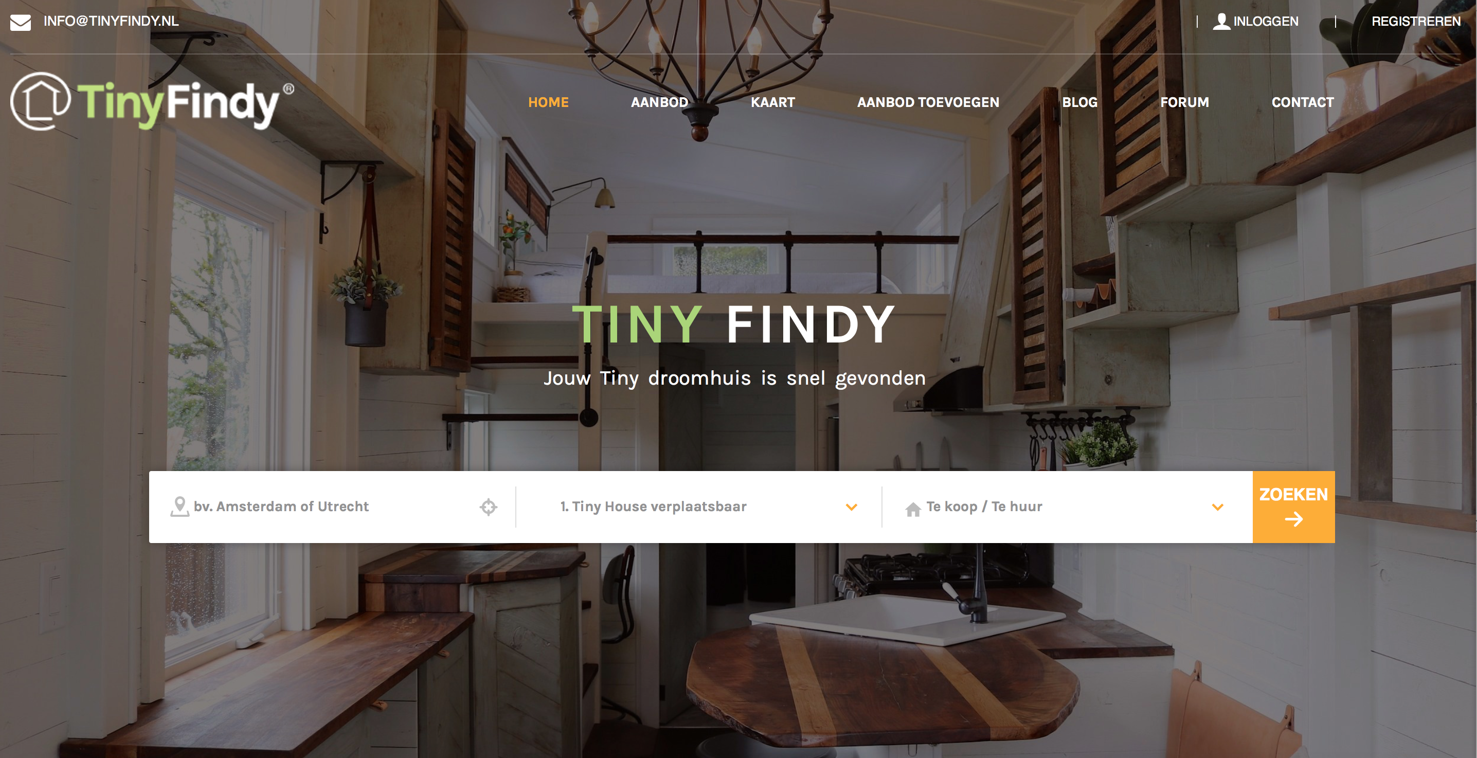 “Minder huis, meer leven”, is dus het motto van Tiny Findy, de Funda van de kleine huisjes. Een handige plek waar mensen die zoeken en aanbieden elkaar kunnen vinden voor kant en klare houses, bouwgrond of bouwpakketten.