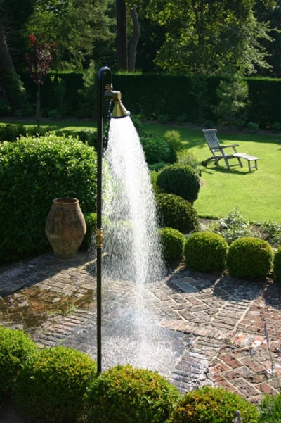 De stoere buitendouche Fieldshow’r, gemaakt van gegalvaniseerde stalen buizen met poederlak, is een aanwinst in de tuin. Door de roestvrijstalen grondpin met pedaal kan dit model overal in de onverharde grond worden geplant. Water wordt simpelweg aangevoerd via een universele snelkoppeling. Ook gemakkelijk om te bouwen tot laarzendouche. Afmetingen: 15 (l) x 15 (b) x 210 (h) cm. Waar: Trade Winds en 0032 93752505. Prijs: € 420,- (thuisbezorgd).