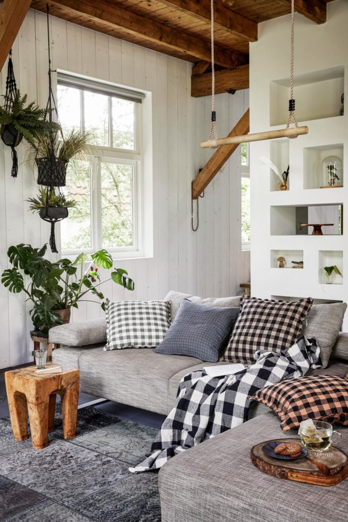 De simpelste manier om je woonkamer een nieuwe, frisse look te geven: voeg wat gezellige kussens met stoere ruit toe. Mix en match verschillende kleuren met elkaar en wissel grote ruiten af met kleine. Dat geeft een speels effect.