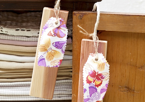 Cederhouten hangers € 4,79 (De Tuinen). Vlinderstof € 5,95 per meter (Rijs Textiles). Kastje € 69 (De Bosrand Brocante).Van boven naar beneden: gehaakt plaid € 29,95 (De Bosrand Brocante). Roze tafelkleed € 34,95 (Dille & Kamille). Gehaakt kleedje € 5 (De Bosrand Brocante). Servetten € 2,25, theedoeken € 3,50 en kussensloop € 8,95 (Dille & Kamille). Witte servetten € 5 (De Bosrand Brocante).