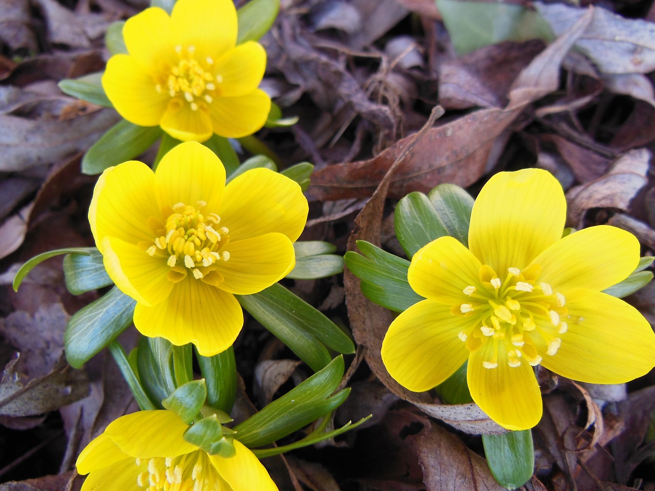 Eranthis hyemalis (winterakoniet) is een stinzenplant die makkelijk verwildert. Erg mooi en vrolijk in combinatie met sneeuwklokjes en krokussen. De bolletjes plant je in het najaar. Bloei februari-maart. Hoogte ± 7 cm. Standplaats (half)schaduw.