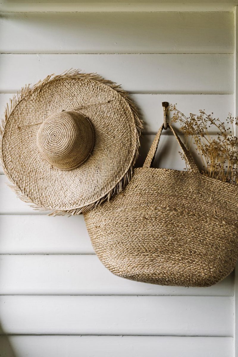 “Rotan is een puur en prachtig materiaal. Zo’n combi is leuk als decoratie, maar ik gebruik de strandhoed ook echt. Geen overbodige luxe als het veertig graden is.”