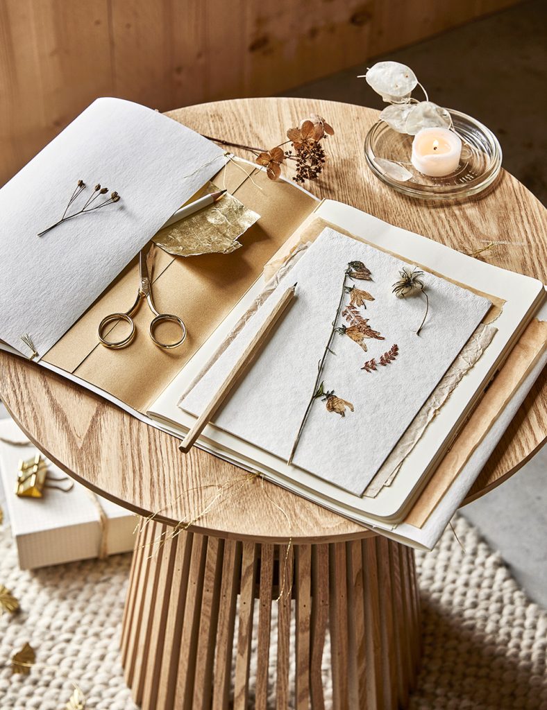 - Steek een mooi schrift in de map of los (hand-geschept) papier.