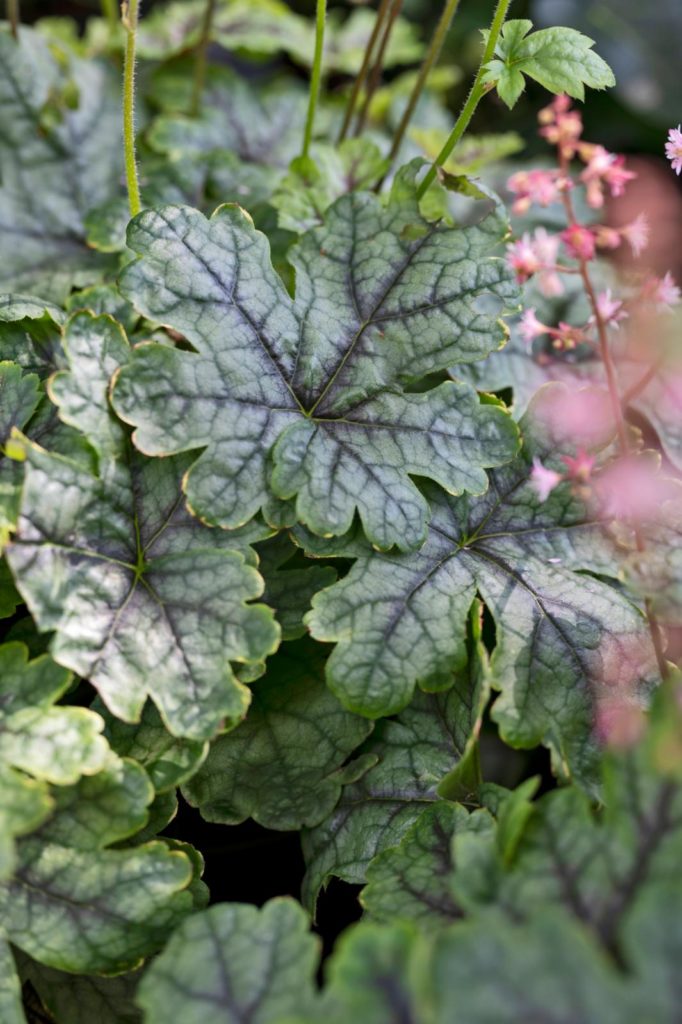 3. Een verfijnde paarse tekening kenmerkt het blad van Heuchera ‘Jade Gloss’ (purperklokje). Het purperklokje komt in de meest prachtige kleuren: een overzicht.
